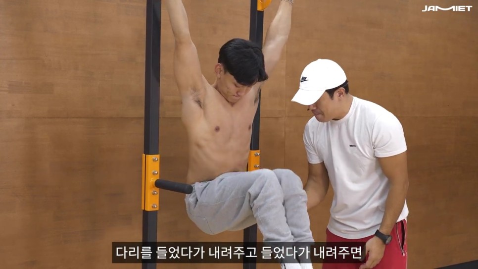 효과가 있는 것은 압니다만, 자극을 받기 어려운 이유가 있습니다.열심히 하는 제대로 자극을 받지 못하는 확실한 이유가 있습니다.중심을 잘 잡지 못하기 때문입니다.일단 매달리는 것부터가 힘든데 몸이 앞뒤로 많이 흔들리잖아요.일단 코어가 약해서 몸이 많이 흔들려요.그렇기 때문에 코어를 단련하고 나서 행잉 레그레그레즈를 해달라고 하면 좋겠지요?